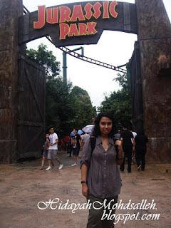 Sebelum datang USS sepupu dayah ada bagi tau yang jangan lupa bawa baju spare sebab nanti ada satu ride tu yang boleh buatkan u olls basah, mula-mula macam alaa!! tak payahlah naik ride tu tapi baju tetap bawa satu spare in-case ternaik ke ride tu kan.hehe!! sekali bila dah sampai sana terasa rugi pulak kalau tak naik, sekali sekala membasahkan diri apa salahnya..hahaha!! Kami try Jurassic Park Rapids Adventure, alaa!! ridenya lebih kurang macam naik boat yang bulat then dia bawa pusing-pusing tengok permandangan, rasanya dekat Sunway Lagoon ada tapi kali ni extreme sikit sebab ada dinasour dan jangan main-main ada satu part tu siap boat ni dinaikkan lepas tu tiba-tiba terkeluar kepala dinasour, pergh!! ngeri kalau tu diansour betul-betul..
